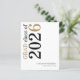 A value for money BUDGET alternative on a smaller size 4.5 x 5.6” semi-gloss 110lbs weight, which is of similar thickness to a postcard (however is not suitable to use as a postcard.). PLEASE NOTE there is ONE per sheet. Budget Black Gold Text 2025 white Graduation Announcement. A modern stylish typographical design to announce the news of your graduate, with stylish large typography rotated and to the left hand side at the top in black and gold. Easily personalise the rest of the text. including your message on the back
