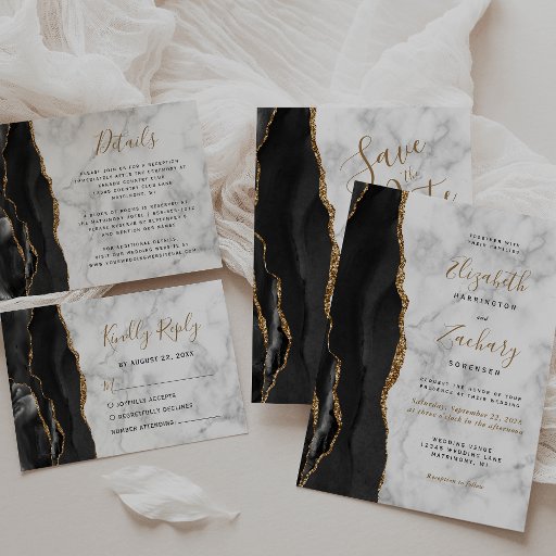 Black Gold Agate Marble Script Wedding SuiteDesigned by Akhates Designs