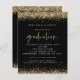 PLEASE NOTE There are two paper options to choose from for this size (4.5 x 5.6”) in the Budget range. For this product, I would recommend the semi-gloss which is a 110 gsm card stock, similar in thickness to a postcard. The Satin option is a much thinner paper 80gsm. The default is set to semi-gloss. NOTE there is ONE per sheet. Budget Black Gold Glitter Graduation Invitation. Elegant gold faux glitter confetti borders are at the top and bottom and also on the back. Graduation is set in a modern handwriting style. Easily personalise the rest of the text to your own.