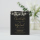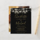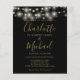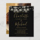 Featuring pretty string lights and your photo and signature style names, this elegant budget black and gold wedding invitation can be personalized with your information in chic lettering. Designed by Thisisnotme©