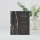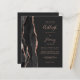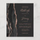 Save the cost of printing and mailing separate RSVP cards with this elegant modern all-in-one budget wedding invitation. The left-hand edge features a black watercolor agate border trimmed with rose gold faux glitter. The customizable text combines rose pink handwriting, copperplate and italic fonts on a slate black background. The reverse side provides space for wedding details on a solid slate black background, along with a QR code guests can scan to visit your website and RSVP.
