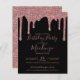 BUDGET Rose Gold Sparkle Glitter Drips Any Year Birthday Invitation featuring faux glitter drips and chic black background. Still beautiful, but a more delicate, less expensive paper style. If you need assistance or matching items, please contact us at cedarandstring@gmail.com.