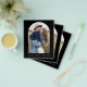 Budget Wedding Black Save the Date Cards that have a photo on the front. The Save the Date cards contain a modern hand lettered cursive script typography that are elegant, simple and modern to use after you minimalist simple wedding day celebration.