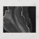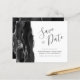 This elegant modern save the date card features a black watercolor agate border trimmed with faux silver glitter. The customizable text combines handwriting script, copperplate and italic fonts in charcoal grey on a white background. The back features a matching black and silver agate design.