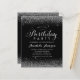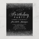 Modern Glam Black Silver Grey Glitter Sparkle Elegant Script Calligraphy Any Age Birthday Invitation