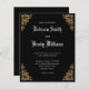 Get affordability AND quality with this "Budget Black Vintage Antique Lace" wedding invitation design. Design features a black background with golden lacey border accents in each corner paired with a lovely antique calligraphy font for the Bride and Groom's names. *To customize further, please click the "Edit" button to open the on-site design tool. *Matching items available in our "Vintage Gold Lace" wedding collection. If you would like an item to match that we do not currently have, please contact me via the "message" button below or at themintymaker@gmail.com
