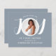 This modern baby boy's budget Baby Shower Invitation is decorated with the word JOY in stylish white typography on a blue background. Easily customizable with your photo and details.