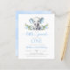 Budget blue floral elephant little peanut boy 1st birthday invitation.