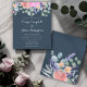 Chic boho wedding invitation featuring a watercolour floral design with sage green eucalyptus, pink and orange roses, and delicate lavender. This romantic and sophisticated template showcases hand-painted botanical elements adorning the top edge and back. Perfect for rustic, garden, or vintage weddings, this customizable invitation suits bohemian, modern, and classic wedding themes. Ideal for spring, summer, and fall weddings, bridal showers, or engagement parties..