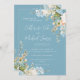 Blue and white hydrangea floral arrangements on a white background. A perfect wedding invitation for any season. Beautiful invitation on the front and all your information, Details, Accommodations, RSVP and QR Code area on the reverse side making this invitation budget friendly. The watercolor open bloom hydrangeas and other flowers are just beautiful. Classy & chic.