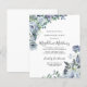 Dusty blue roses, peonies and wildflowers decorate a pretty floral Quinceanera birthday budget invitation. Modern calligraphy adds to the Boho Vibe.