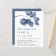 Blue Foliage Family Reunion Party Invite. A budget friendly SMALLER 4.5” x 5.6” alternative. Available in a SEMI GLOSS 110 lb CARD STOCK or a SATIN FINISH 80 lb THINNER PAPER STOCK. Envelopes are an optional extra. Modern large watercolor deep blue leaves decorate the top and the occasion header is large below in stylish lowercase with the details at the bottom. Easily personalise the text to your own details.