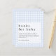 A budget price SMALLER 4.5” x 5.6” alternative. The SATIN FINISH 80 lb IS A THINNER PAPER STOCK (ideal for enclosures), alternatively Available in a SEMI GLOSS 110 lb CARD STOCK (ideal for invitations). Envelopes are an optional extra and are slightly larger than the card size. Blue Gingham Books for Baby enclosure. Baby Boy. The header is large in stylish lowercase with the details at the bottom on an opacity layer overlaid onto the gingham background. Easily personalise the text to your own details.
