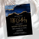 This trendy 18th birthday invitation features a watercolor image of an agate geode in shades of blue with faux gold highlights. The words "18th Birthday" appear in faux gold glitter in decorative modern handwriting font. Customize it with the name of the honoree in gold coloured text and the details in white. The same blue agate image appears on the reverse side.