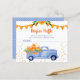 This adorable, boy, 5.6" x 4.5" budget diaper raffle card featuring a watercolor blue pickup truck loaded with orange pumpkins with glitter details would be perfect for including with your shower invitations! It's fabulous for a fall or harvest time baby shower. It has a coordinating soft blue back with tiny white polka dots. So cute for asking guests to bring a pack of diapers for the sweet little baby boy you are welcoming.