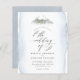 Budget Blue Watercolor Leaves & Mountain Wedding Invitation. If you are planning on celebrating your wedding outdoors or simply love greenery and mountains, this wedding invitation will be just perfect for you! Featuring green watercolor leaves around a chic script font, mountains, and a log cabin with trees illustration at the top. Your wedding details are displayed in classy serif typography placed on top of a faded blue watercolor background. Reversing to a matching watercolor background. Perfect for rustic or country-themed weddings.