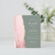 The left-hand edge of this elegant modern wedding invitation features a blush pink watercolor agate border trimmed with faux gold glitter. The customizable text combines pale blush handwriting, copperplate and italic fonts on a deep sage green background. The reverse side provides space for wedding details on a solid sage green background, along with a QR code guests can scan to visit your website and RSVP, which saves the cost of printing and mailing separate RSVP