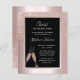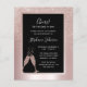 On a background of blush pink metallic foil, our elegant 40th Birthday party invitation features a feminine blush glitter ombre overlay with bubbling champagne glasses toasting the Big 4-Oh! birthday honoree. In a black frame with a blush foil border, you'll find example text that you can easily revise on the personalization template. The back of this Budget milestone 40th birthday party invitation displays the unique ombre glitter design as well.
