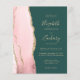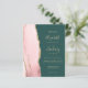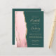 The left-hand edge of this elegant modern wedding invitation features a blush pink watercolor agate border trimmed with faux gold glitter. The customizable text combines pale gold-coloured handwriting, copperplate and italic fonts on an emerald green background. Add additional details on the back, along with a QR code to help your guests visit your wedding website.