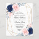 Budget Blush & Navy Blue Rose Wedding Invitation