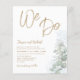 This is a modern and elegant 'We Do' calligraphy wedding invitation in gold on a white background with the addition of sage green eucalyptus and coordinating botanical elements. Easy to customize the text to create something really unique.