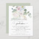 Boho Floral Eucalyptus Graduation. A budget friendly SMALLER 4.5” x 5.6” alternative. Available in a SEMI GLOSS 110 lb CARD STOCK or a SATIN FINISH 80 lb THINNER PAPER STOCK. Envelopes are an optional extra. Modern bohemian style florals and foliage in sage green and pinks from the top with tint graduating to partially fall behind the text. Graduation is in a handwriting style script. Easily personalise the text to your own details.