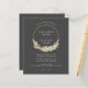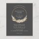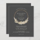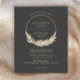 This boho wedding design features the bride and groom's names framed by a gold hoop decorated with watercolor pampas grass. Personalize the beige text with the couple's names and wedding details on a charcoal grey background. The reverse side is a solid shade of charcoal grey.