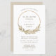 This boho wedding design features the bride and groom's names framed by a gold hoop decorated with watercolor pampas grass. Personalize the light brown text with the couple's names and wedding details. The reverse side is a solid shade of beige.