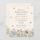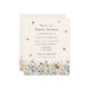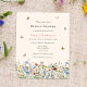 This is a boho and budget friendly bridal shower invitation. The design features a colourful and delicate field of summery wildflower florals in pretty shades of blue, terracotta, pink, purple and yellow. The butterflies and bees add the finishing whimsical and pretty touch.