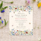 This is a delicate and budget friendly bohemian bridal shower invitation. The design features a colourful boho field of summery wildflower florals in pretty shades of blue, terracotta, pink, purple and yellow. The butterflies and bees add the finishing whimsical and elegant touch.