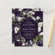This budget elegant botanical invitation features framed by greenery winter foliage and twigs with white wild berries and shining string lights on a dark purple background. Enjoy it.