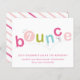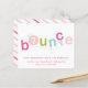 This bounce birthday party invitation features bouncing letters in a girlie colour palette of hot pink, light pink, lime green and aqua with editable age in the O. A super fun, extra girlie take on a trampoline, gymnastics or bounce house party. This invitation is inspired by all the little girls who like jump, bounce and fly. Click edit to customize.