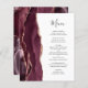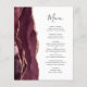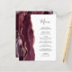 Le bord gauche de cet élégant menu mariage moderne comporte une bordure en aquarelle rouge bordeaux ornée d'une parties scintillant en or rose. Le texte personnalisable combine un script d'écriture manuscrite gris charbon et des polices de cuivre sur un arrière - plan blanc. L'envers est assorti d'une agate d'or rose et bordeaux.