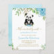 Budget cute adorable blue floral greenery eucalyptus, botanical foliage, watercolor sage green leaves, gold leaf, baby panda bear, we can bearly wait! It's a boy baby shower invitation. You can customize this elegant modern invitation with your own text.