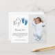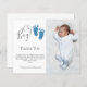 Ce Carte de remerciements de Baby shower Boy à petit budget est décoré avec une élégante typographie de script et les pieds de bébé en parties scintillant bleue mignonne. Facilement personnalisable avec votre message et votre photo.