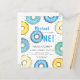 This cute budget birthday invitation is decorated with watercolor doughnuts in pastel shades of blue and yellow.