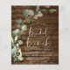 Budget Eucalyptus Greenery Rustic Wood Botanical Watercolor Spring Wedding Bridal Shower Invitations on white background - includes beautiful and elegant script typography with modern botanical leaves and greenery for the special Bride to Be celebration.