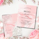 Elegant, classic, glamourous and girly style bridal shower invitation. A white dress with faux glitter dripps, paint dripping look. Blush pink satin,silk print as background. With the text: Bridal shower on front written with a modern hand lettered style script.