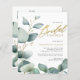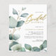 Modern boho chic emerald sage green dusty blue watercolor eucalyptus succulent leaves elegant faux gold script BUDGET affordable bridal shower invitation.