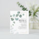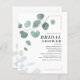 Modern, greenery, and trendy budget bridal shower invitation cards featuring eucalyptus and modern typography in dark grey. Simply plug in your details by clicking the "Personalize" button above