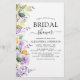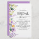 Budget Spring or Summer Eucalyptus and Purple (Lavender) & Orange (Peach) Floral Flowers Botanical Foliage Watercolor Greenery Wedding Bridal Shower Invitations on white background - includes modern beautiful and elegant script typography with modern botanical leaves and greenery for the special Bride to Be celebration.
