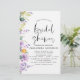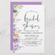 Budget Spring or Summer Eucalyptus and Purple (Lavender) & Orange (Peach) Floral Flowers Botanical Foliage Watercolor Greenery Wedding Bridal Shower Invitations on white background - includes modern beautiful and elegant script typography with modern botanical leaves and greenery for the special Bride to Be celebration.