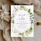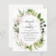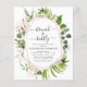 Budget Brunch and Bubbly Champagne Eucalyptus Greenery Botanical Watercolor and Rose Gold - Blush Pink Geometric Spring Wedding Bridal Shower Invitations on white background - includes beautiful and elegant script typography with modern botanical leaves and greenery for the special Bride to Be celebration.