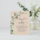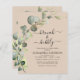 Budget Brunch and Bubbly Eucalyptus Terracotta Greenery Succulent Botanical Watercolor Emerald Green Spring Wedding Bridal Shower Invitations on white background - includes beautiful and elegant script typography with modern botanical leaves and greenery for the special Bride to Be celebration.