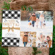 A budget-friendly Christmas photo collage greeting card printed on 4.5x5.6-inch lightweight 110 lb semi-gloss paper instead of cardstock featuring a black and white buffalo check plaid design, titled MERRY CHRISTMAS in a brown Kraft paper font with hand-drawn winter foliage and tied neatly with a golden brown bow with 3 photos. Ideal for conservative budgets and/or hand-delivering to family and friends. ADD ENVELOPES on the ordering page if desired. ASSISTANCE: For help with design modification or personalization, transferring the design to another card style or other product or if you would like coordinating items, contact the designer BEFORE ORDERING via the Zazzle Chat MESSAGE tab below or email makeitaboutyoustore@gmail.com.