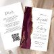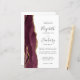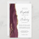 The left-hand edge of this elegant modern wedding invitation features a burgundy red watercolor agate border trimmed with faux gold glitter. The customizable text combines charcoal grey handwriting, copperplate and italic fonts on a white background. Add additional details on the back, along with a QR code to help your guests visit your wedding website.