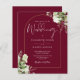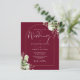 This budget elegant botanical greenery leaves wedding invitation can be personalized with your information in chic typography with your monogram initials on the reverse on a burgundy background. Designed by Thisisnotme©