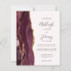 The left-hand edge of this elegant modern wedding invitation features a burgundy watercolor agate border trimmed with faux gold glitter. The customizable text combines handwriting, copperplate and italic fonts in charcoal grey on a blush pink background. The reverse side features a matching burgundy and gold agate design. A perfect colour combination for a fall wedding!