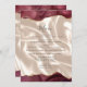 This elegant modern wedding menu features a top and bottom borders of burgundy red watercolor agate trimmed with gold faux glitter. The customizable text combines charcoal gray whimsical handwriting and sans serif fonts on a background image of ivory silk or satin.