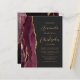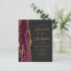 The left-hand edge of this elegant modern wedding invitation features a burgundy watercolor agate border trimmed with faux gold glitter. The customizable text combines gold-coloured script and sans serif fonts on a slate black background. The reverse side features a matching burgundy and gold agate design.
